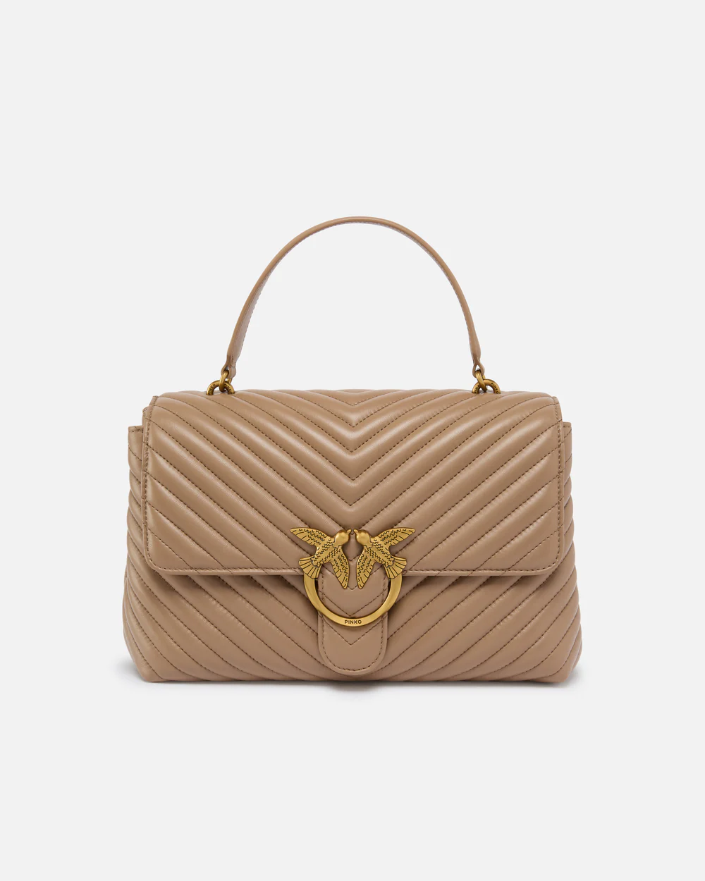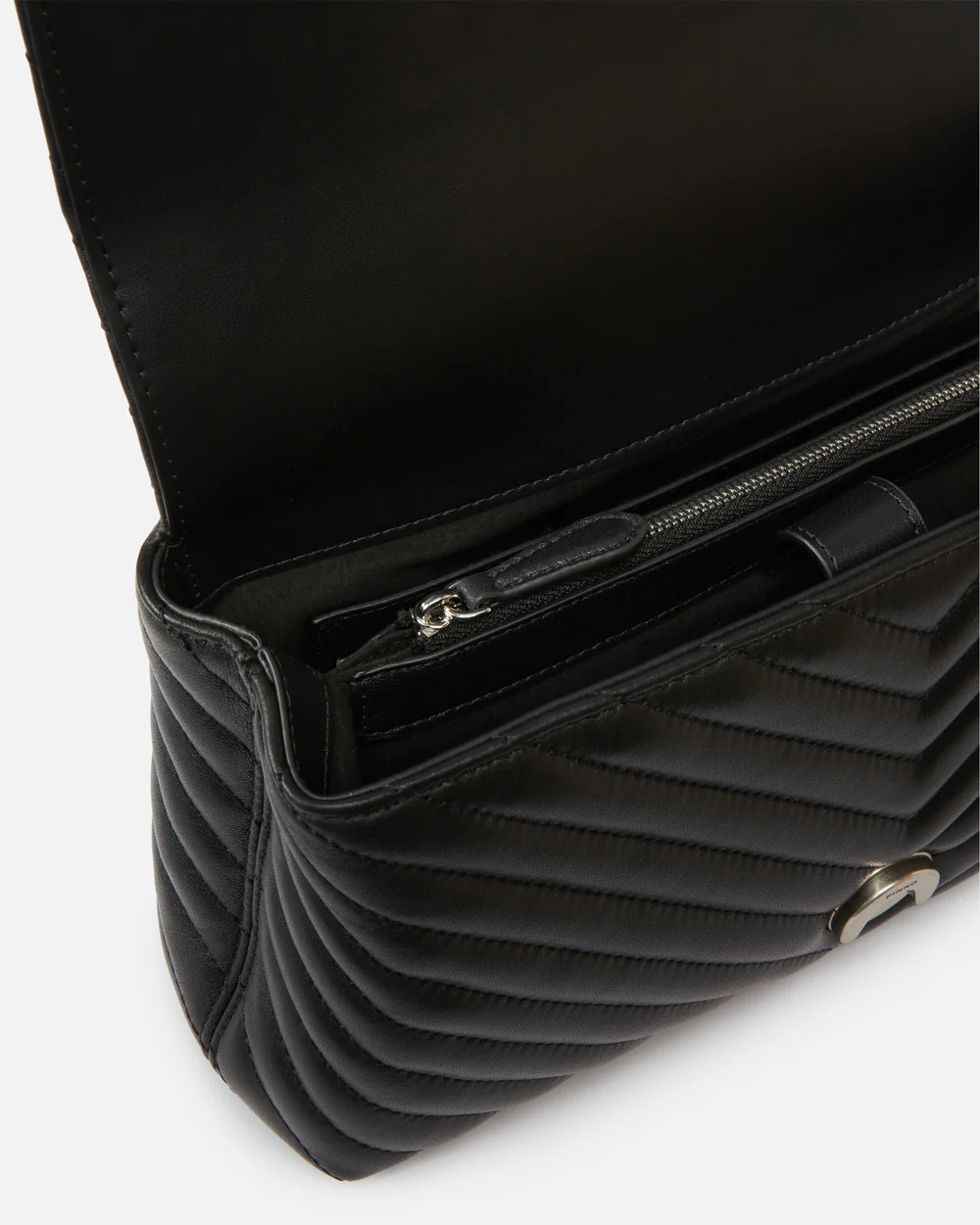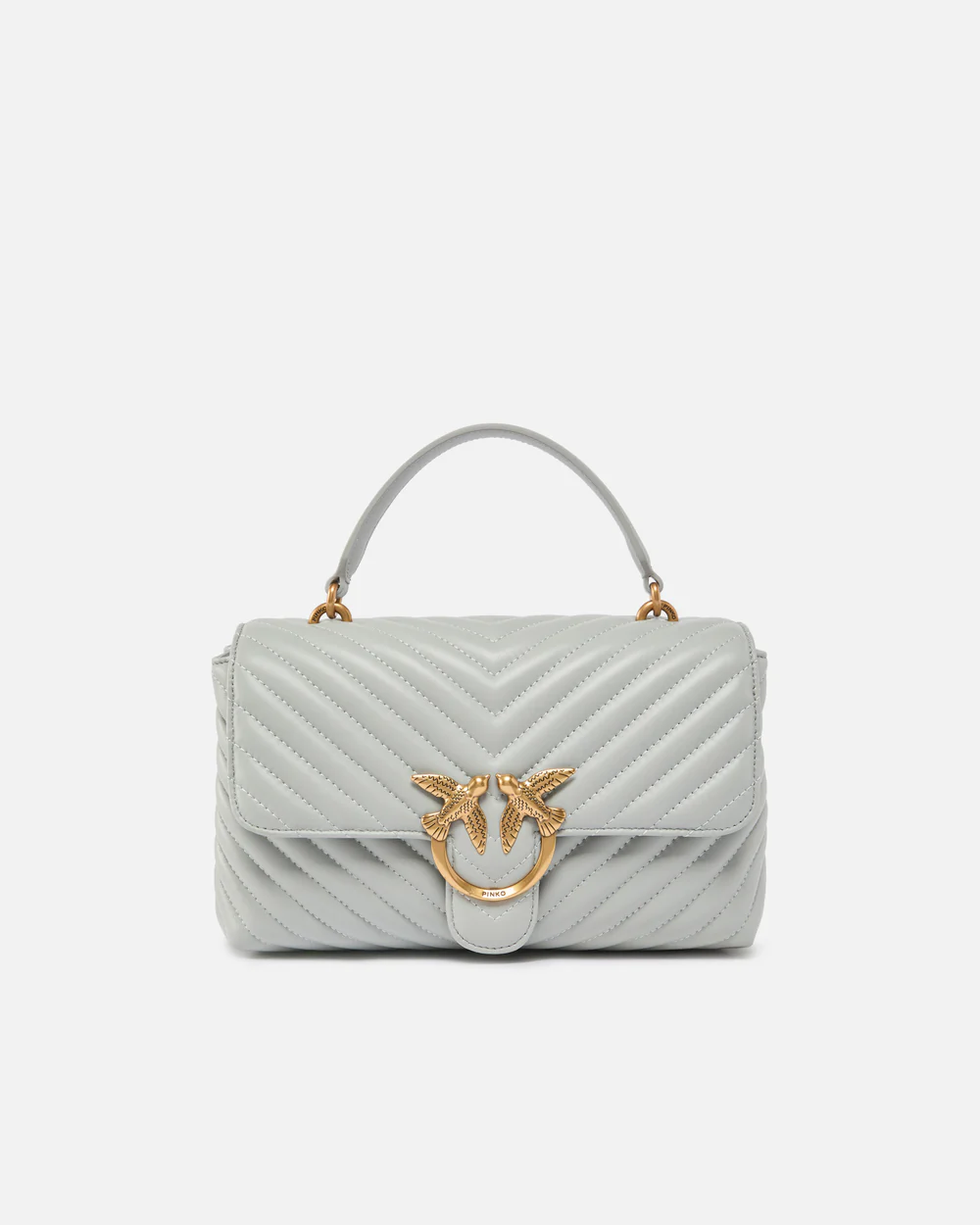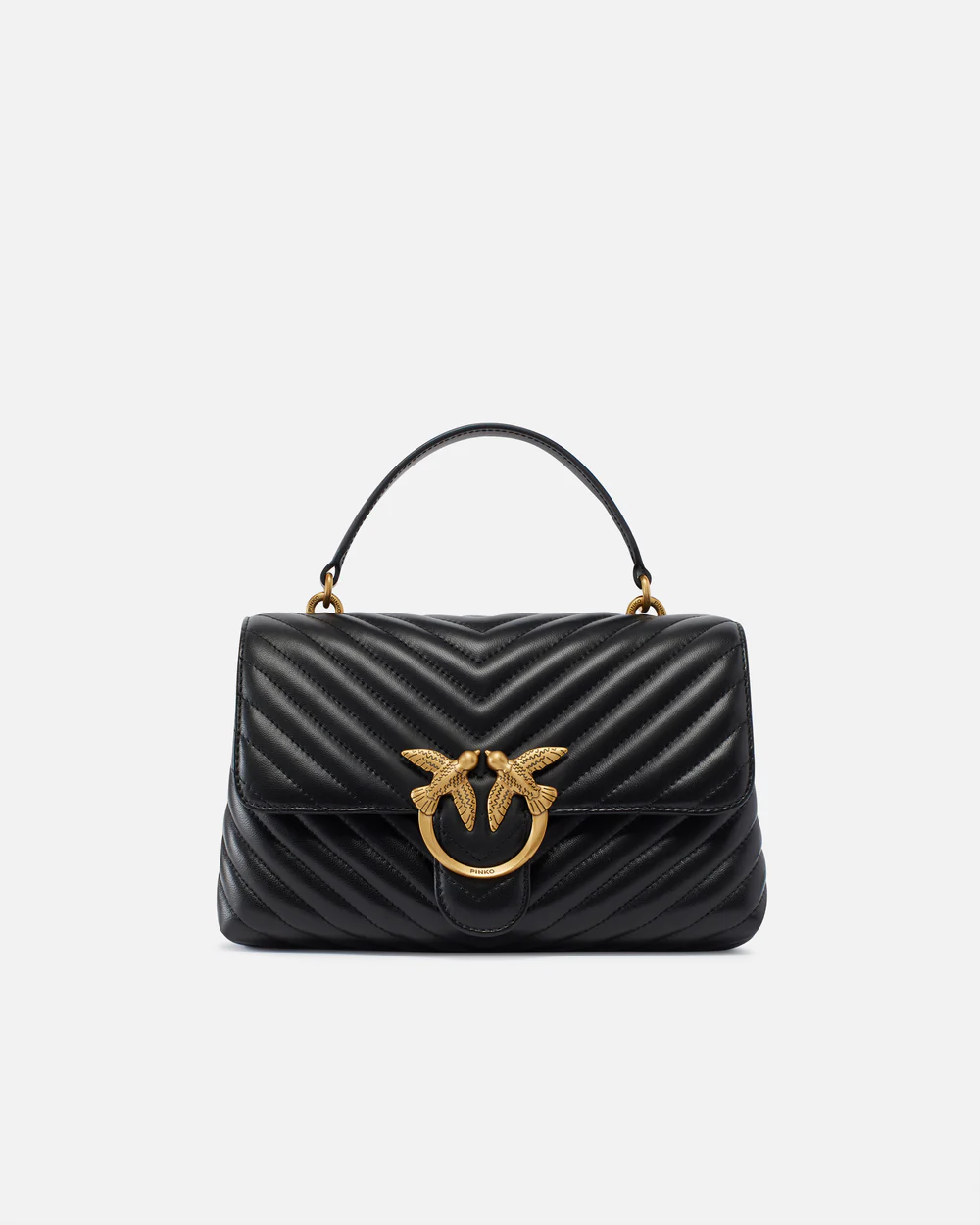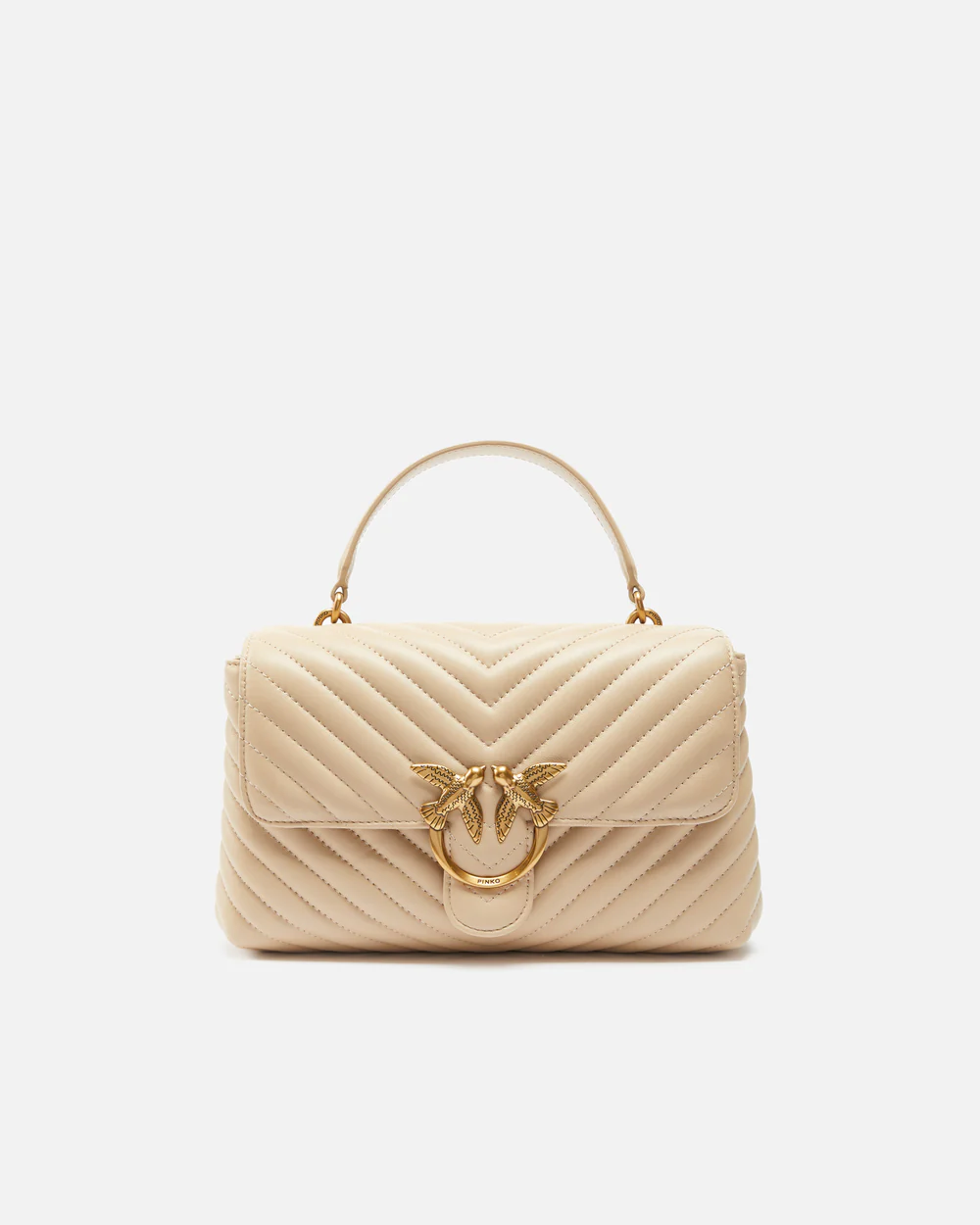 Bolso Classic Love Bag Puff de napa acolchada con motivo chevrón. El cierre se completa con la emblemática hebilla Love Birds Diamond Cut de metal. El interior presenta un forro de microfibra con efecto ante e incluye un panel divisorio con cierre de cremallera y un bolsillo interno. La correa combina la clásica cadena redonda de metal con una práctica hombrera regulable de napa.