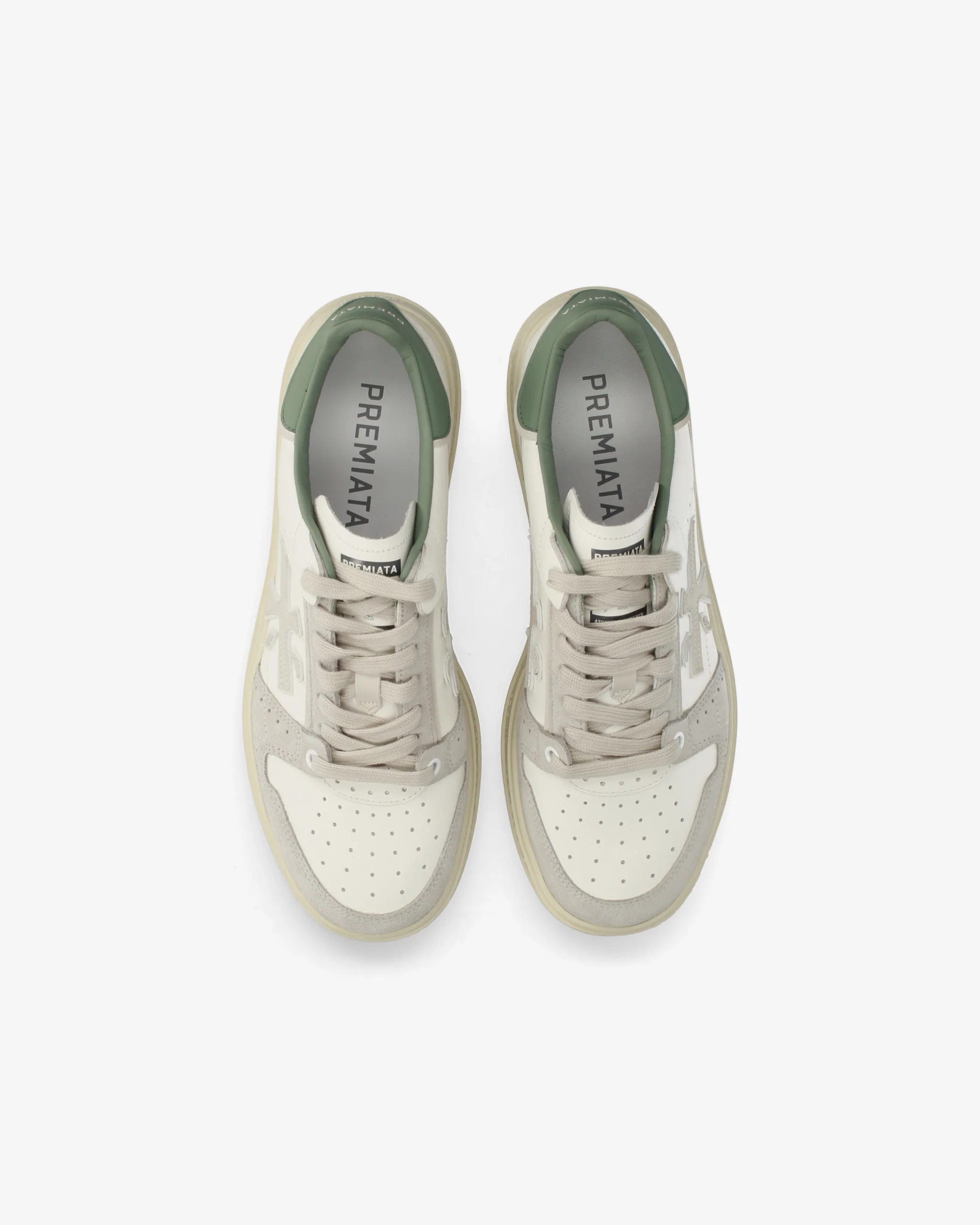 Creado para reinterpretar el mundo del deporte con un toque de alta costura, rico en detalles como los numerosos agujeros que caracterizan su diseño. Estos agujeros se inspiran en la artesanía «Brogue» del mundo clásico en el que Premiata tiene sus raíces.